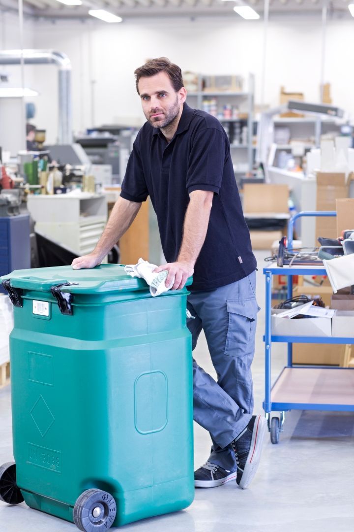 A variedade de panos para diferentes aplicações oferece um amplo leque de utilização na indústria, em oficinas automóveis e empresas artesanais. O contentor de segurança SaCon completa o sistema de panos de limpeza da MEWA. Serve para guardar os panos até à recolha de forma segura, de acordo com a lei e a poupar espaço. Os panos limpos são entregues no SaCon hermeticamente fechado e os panos sujos recolhidos para lavagem no SaCon pelo motorista de serviço da MEWA.